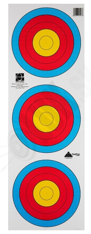 3 terče redukované na halovú súťažnú streľbu na 18 m zo spevneného papiera určeného pre olympijské luky so zameriavačom.