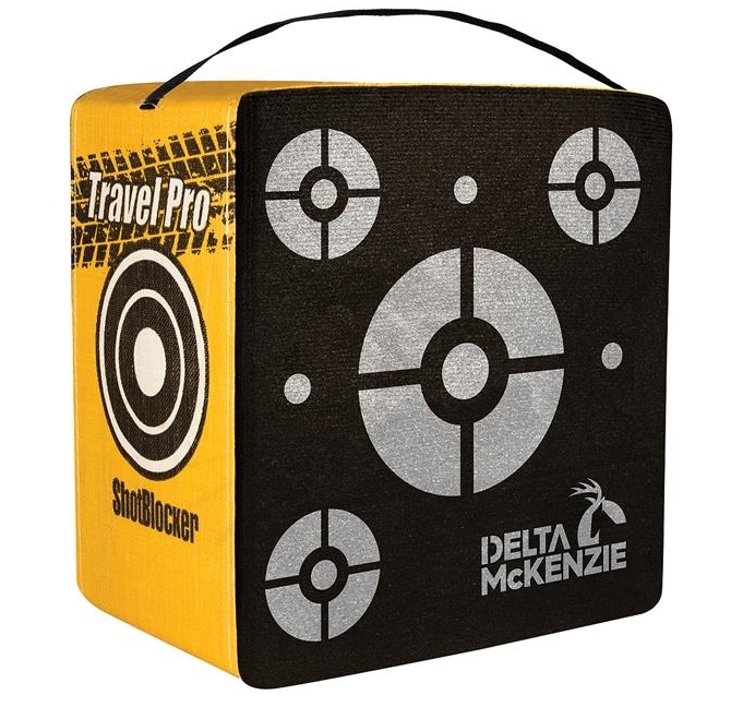 Vhodná terčovnica na streľbu z kladkových lukov a kuše, ľahko prenosná (s držadlom). Terče sú z každej strany.