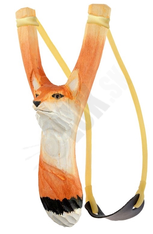 Jednoduchý drevený prak s motívom líšky na hobby streľbu detí aj dospelých.