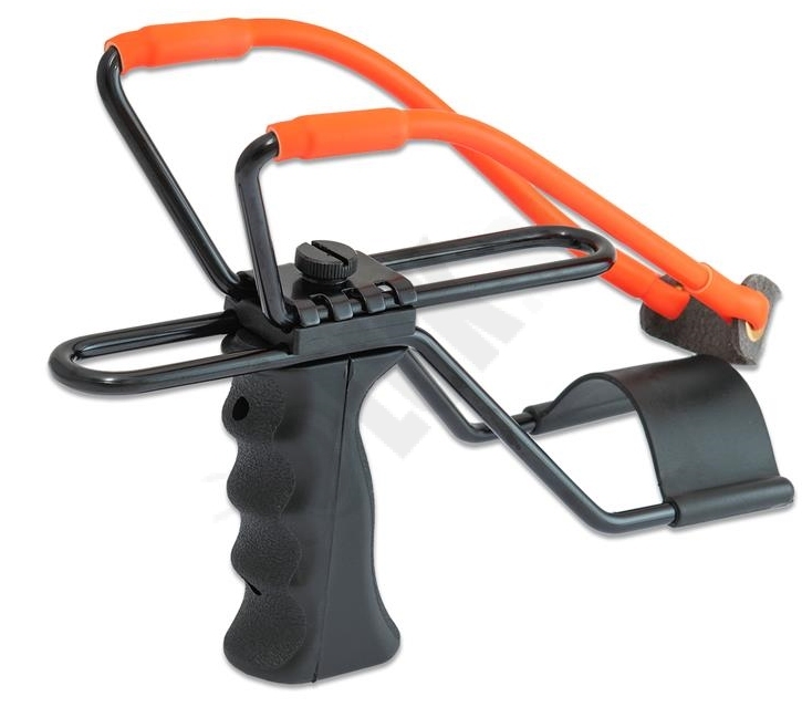 Prak PISTOL Maximal slingshot s nastaviteľnou dĺžkou natiahnutia pre rôzne dlhé ruky a so sklopnou opierkou na lepšie zapretie o ruku. Guma je vymeniteľná v cene 4,90 eur. Odporúčame 8 mm guľočky.