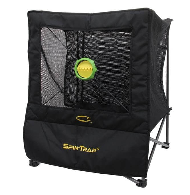 Terč na strieľanie prakom Saunders SPIN TRAP, ktorý sa dá ľahko rozložiž kdekoľvek a slúži na zachytávanie guľôčok do praku a ich opätovné využitie.