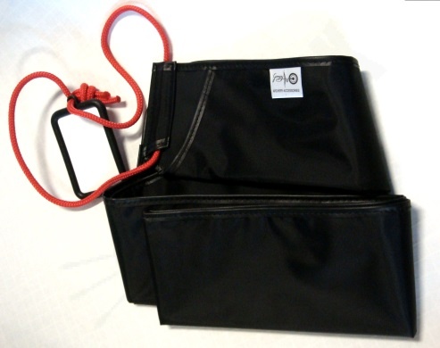 Pevný návlek z tvrdšej nylonovej textílie čiernej farby na longbow.