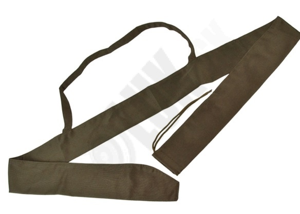 Jednoduchý návlek na longbow s držadlom z pevnej tkaniny.