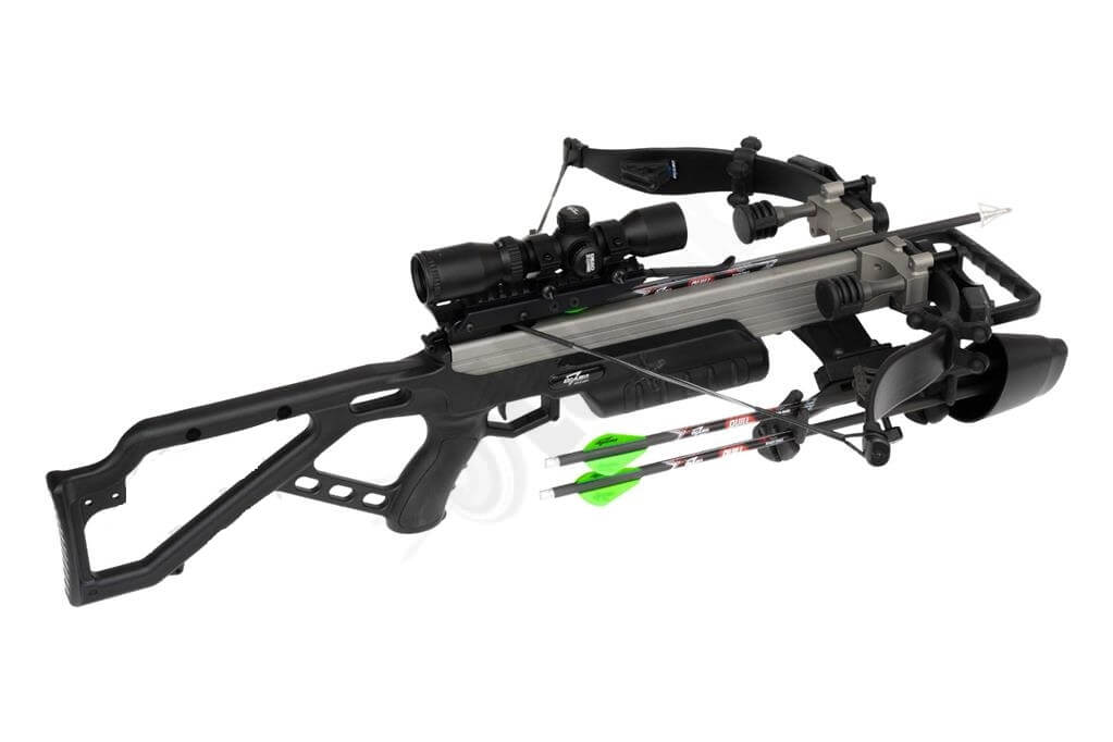 Lovecká kuša na menšiu a strednú zver a lov do cca 30-40 metrov, terčový dostrel cca do 65m. Excalibur MAG 340 fps je malá, ľahká a kompaktná a ekonomická, pritom so zárukou kvality, výdrže a výborného dizajnu od EXCALIBUR. Kuša vhodná pre strelcov aj s menšou postavou a dĺžkou paží, je možné neskôr predĺžiť pažbu pomocou excalibur x-tendera botky. Vo výbave je multikrížová podsvietená optika tact-100 scope s 1´´ objímkami, držiak na šípy, 3 karbonové šípy Quill 16,5 s končekmi rhino nock, pomocný napínač tetivy (cocking aid), systém proti výstrelu naprázdno a plus šetriace gumové tlmiče priamo na ramenách aj v tetive. Naťahovanie len pomocou priloženého napínača zvládne takmer každý dospelý chlap. Je možné k nej obstarať aj kľukový napínač excalibur crank EXT charger (cca 299 Eur).