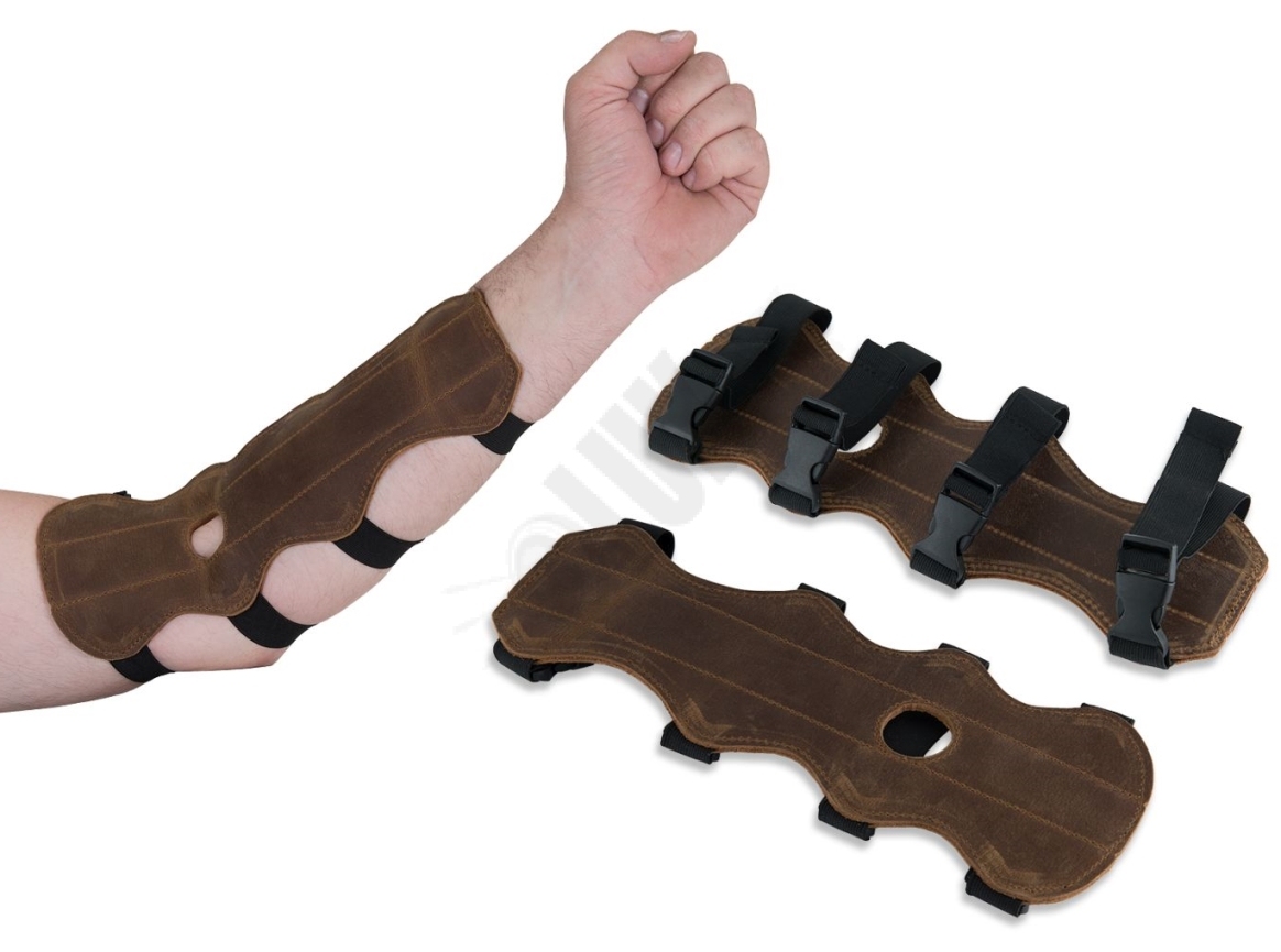Tradičný aj športový chránič na pažu pre začínajúcich strelcov z nubuku, čo je brúsená koža. Popruhy sú gumové a dobre držia na ruke, dajú sa nastavovať.