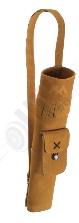 Kožený tulec na tradičnú streľbu na zavesenie na chrbát s kapsou určený pre deti a juniorov.