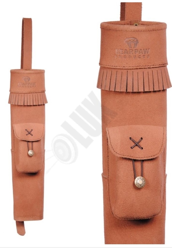 Kožený tulec BEARPAW Little indian back quiver na nosenie na chrbáte s bočným vreckom pre tradičných detských a juniorských strelcov.